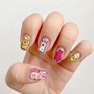 ハンド キャラクター ミディアム カラフル ビビッド 爪細工のネイルデザイン No ネイルブック キュート ネイル 可愛いネイル ネイルデザイン